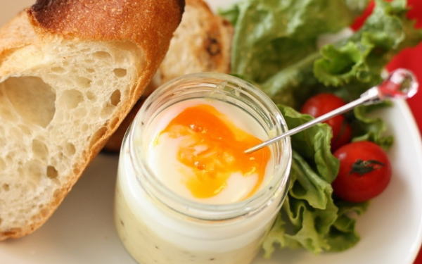 簡単に言うと、耐熱のガラス瓶になめらかなマッシュポテトを入れ、その上から卵を落とし、それを蒸した料理です。タマゴがとろりとした半熟状態になれば完成です。